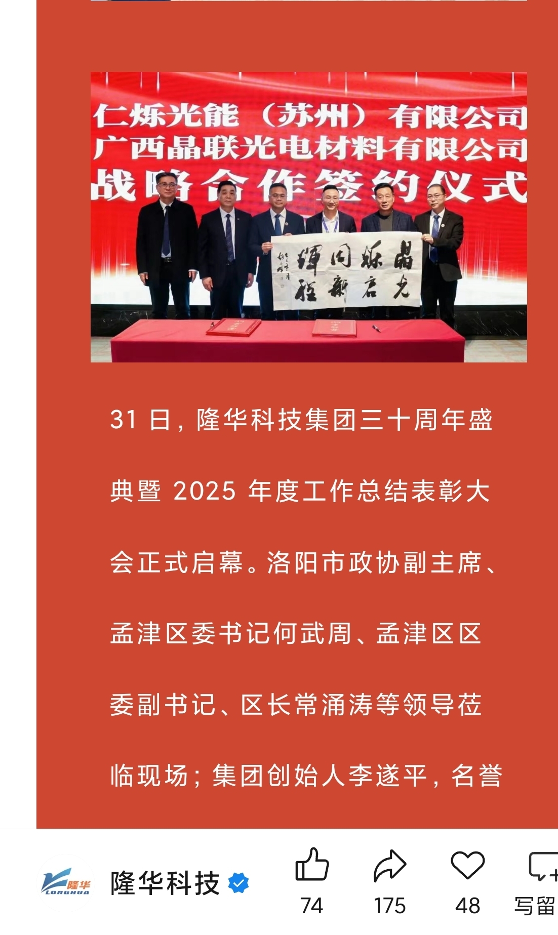 $隆华科技(SZ300263)$ 公司总是不经意发一些重要信息,大家可以去查一下仁烁光能这家公司。