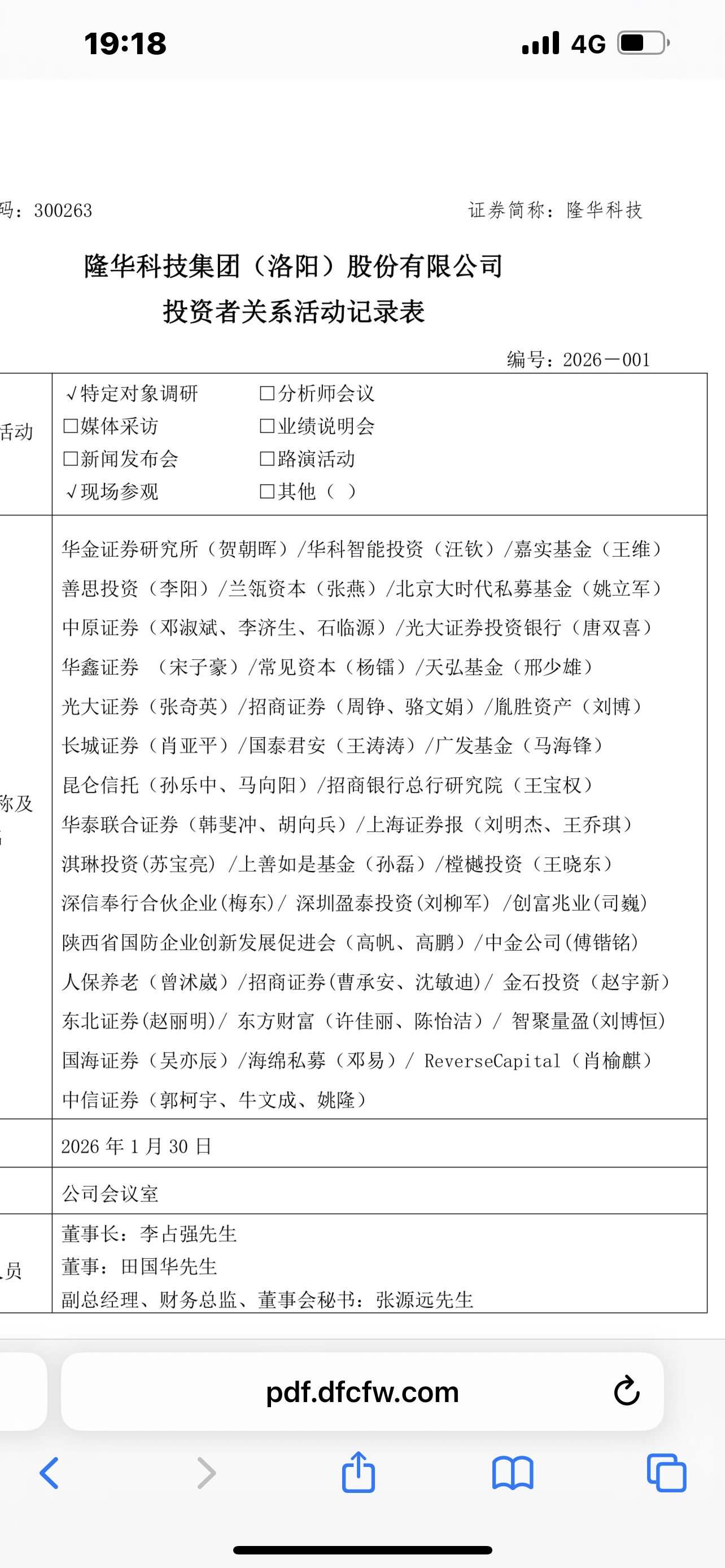 今晚的隆华科技真的是星光闪耀啊:实锤商业航天合作+隐身材料扩产+半导体存储靶材,参会的可是30多家机构阿!