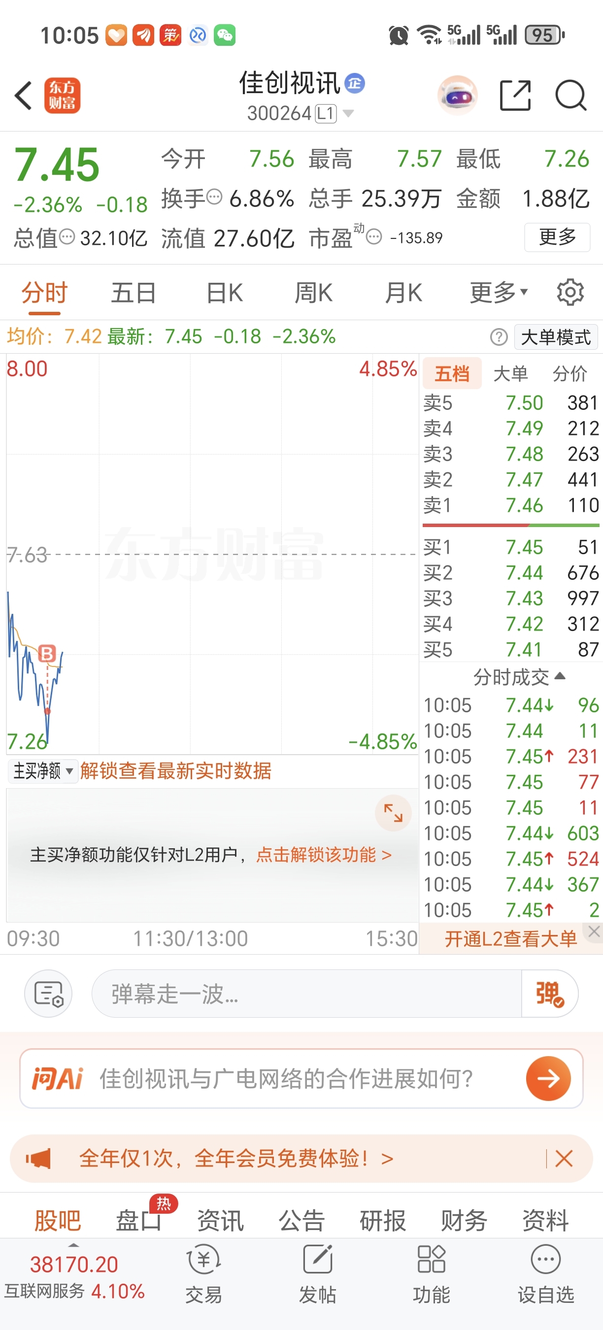 $佳创视讯(SZ300264)$