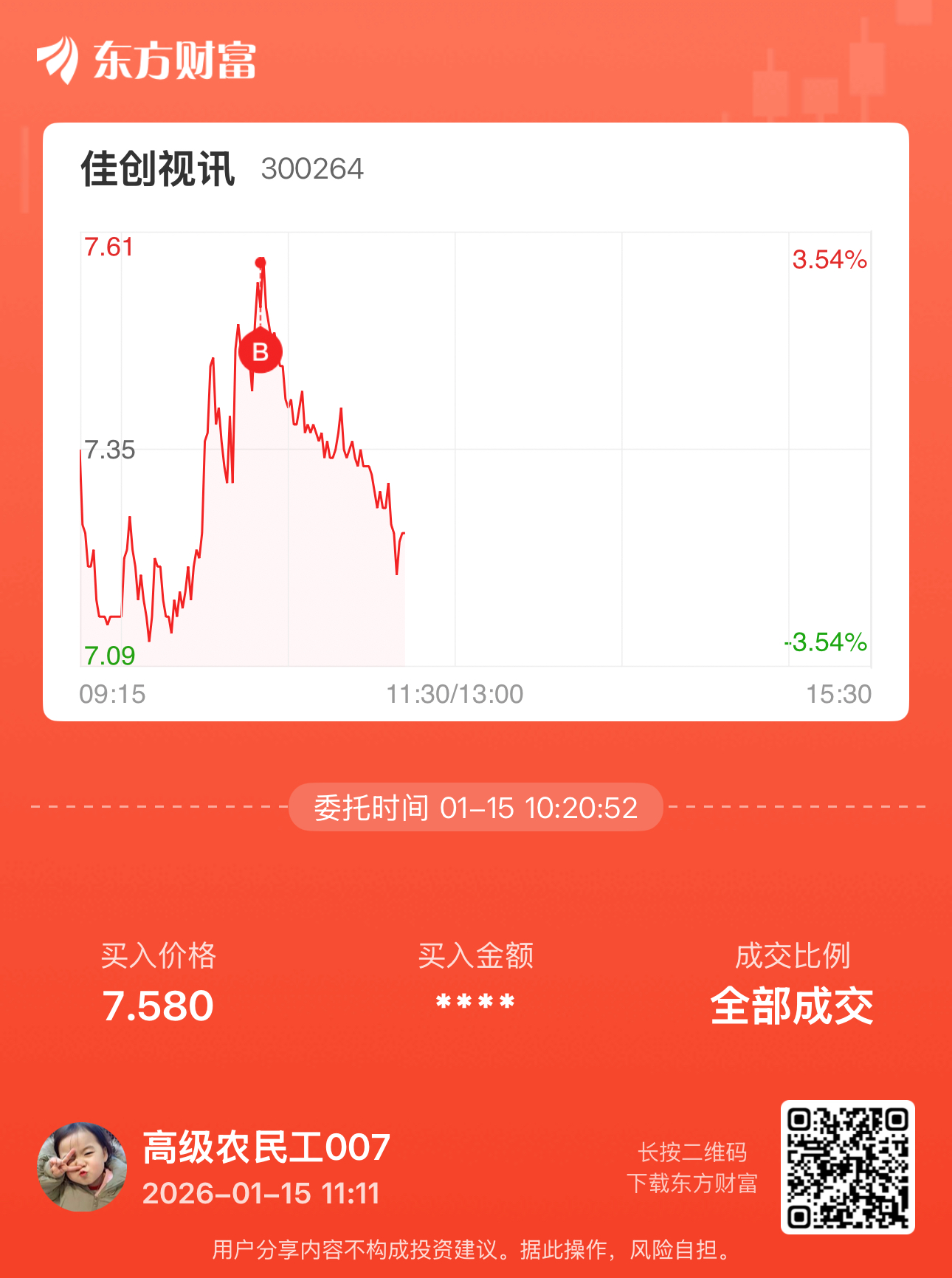 $佳创视讯(SZ300264)$ 兄弟们 对不起 是我买下来的