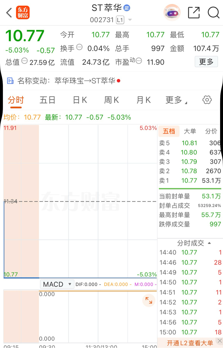 $佳创视讯(SZ300264)$ 看看萃华珠宝太惨了