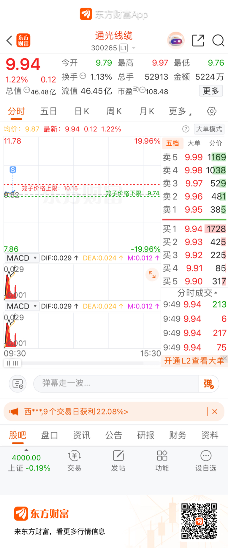 $通光线缆(SZ300265)$ 是我9.89卖了才会涨到9.90的你们要谢我