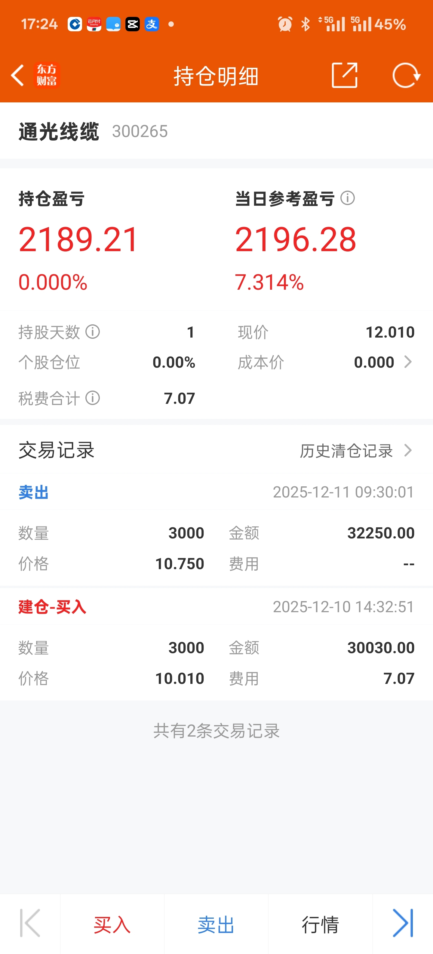 $通光线缆(SZ300265)$ 还有比我更韭的吗?昨天10.1进的,今天看到高开5个多点,赶紧挂高几分钱卖了,4月份的时候在这个票上最多浮亏20几个点都抗住了,今天居然经不住5个点盈利的波动,心理真TM难受。