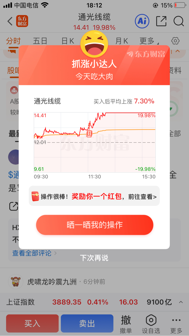 $通光线缆(SZ300265)$ 周四首板,没什么埋伏盘,快速拉升封板不给散户买入机会,周五开源和其他游资全部出清,被市场合力接住了,创业板连板票都不会差,保守估计还有20%涨幅,商业航天叠加电网设备两个主流题材,周一估计有10%左右涨幅