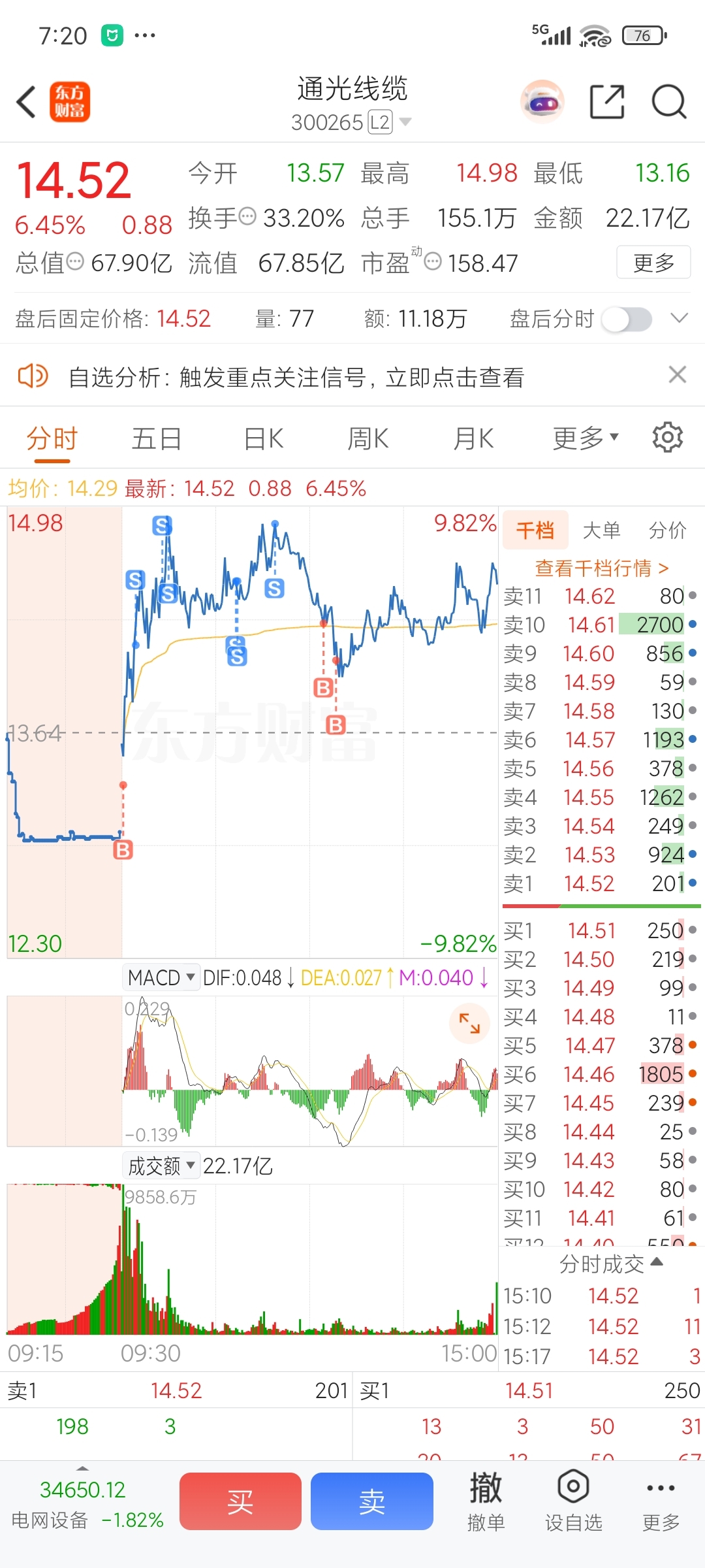 $通光线缆(SZ300265)$ 明天低开的话继续做t,高开就继续格局
