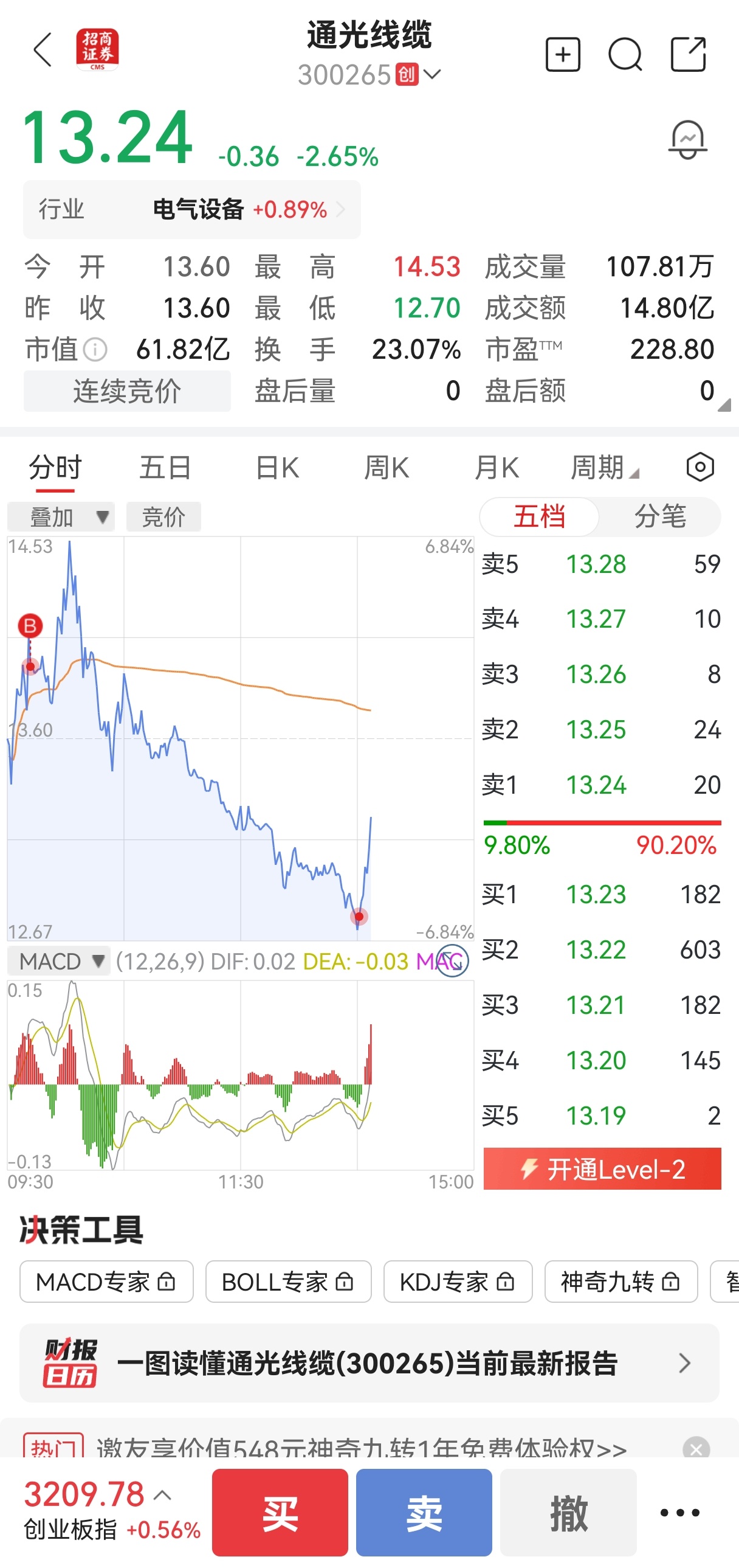 $通光线缆(SZ300265)$ 14进来了