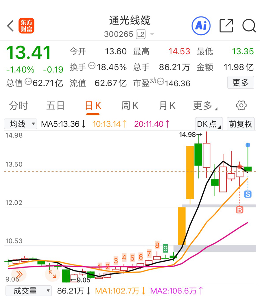 $通光线缆(SZ300265)$ 一日游,希望明天可以涨一下,毕竟独乐乐不如众乐乐。