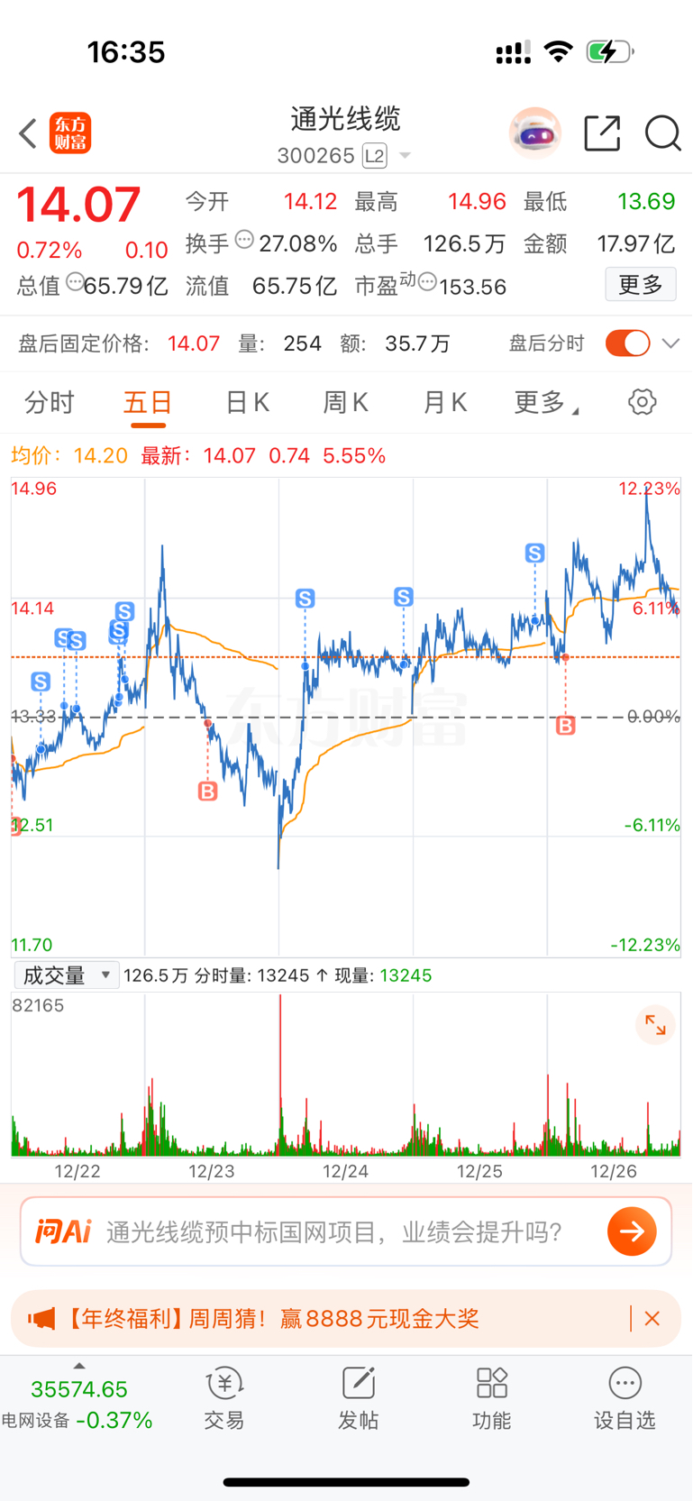 $通光线缆(SZ300265)$ 这周整体做T还行,除了昨天。。昨天估计没睡醒雪人集团做了4K的反T