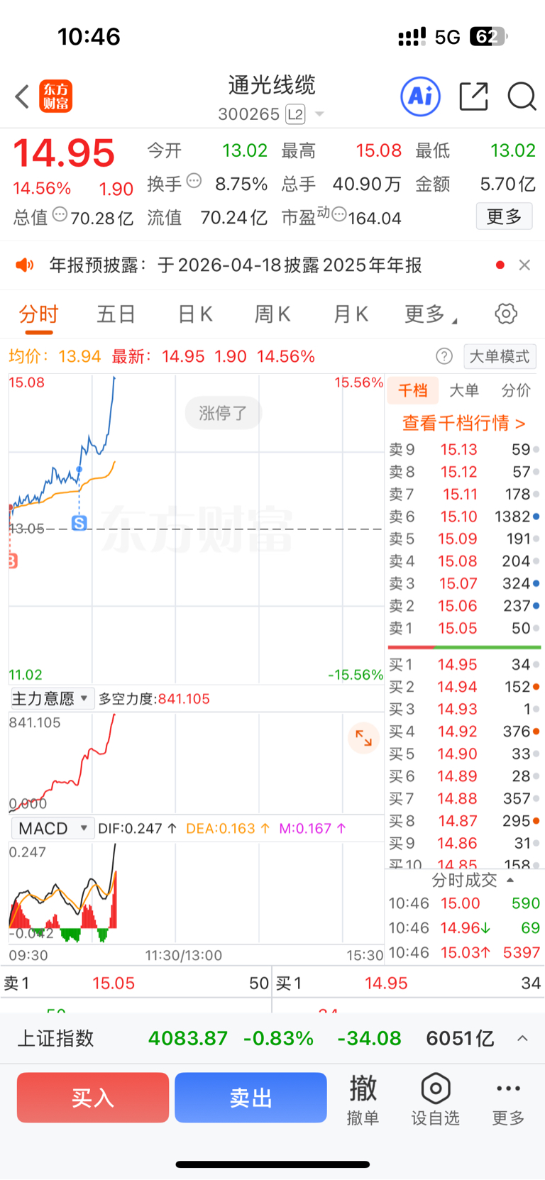 $通光线缆(SZ300265)$ 幸好卖了一半,没有全卖