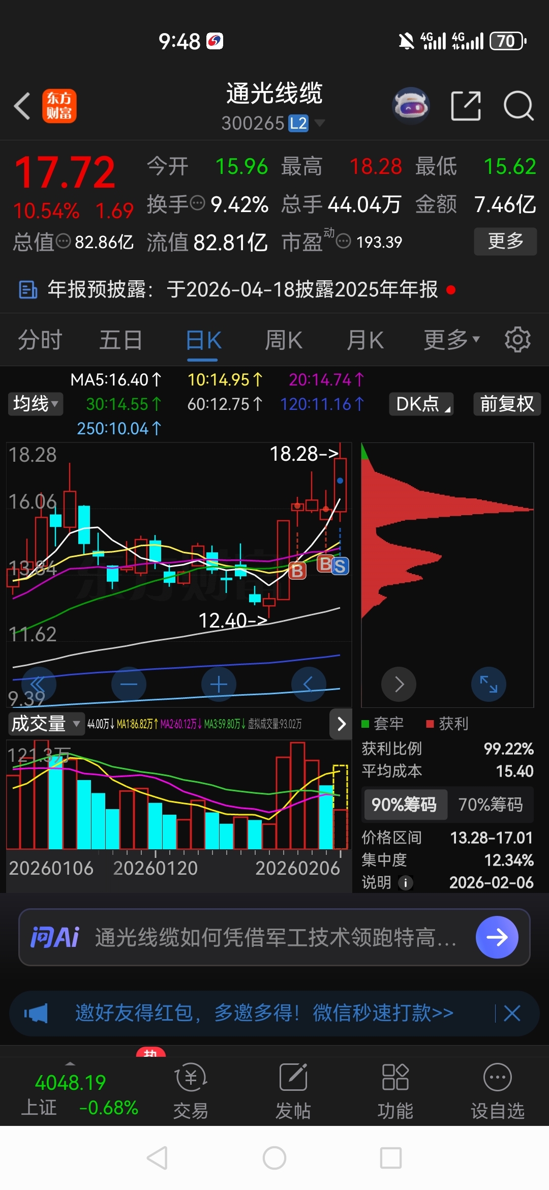 $通光线缆(SZ300265)$ 必须嘚瑟一下了