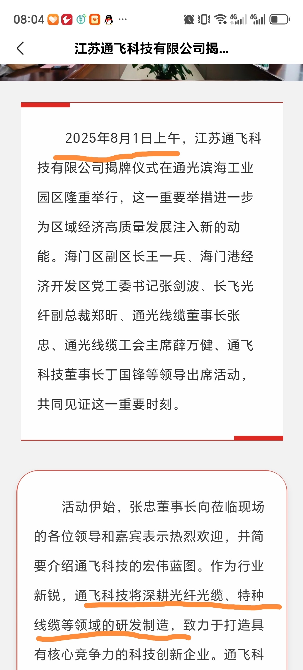 25年8月1号揭牌,海门区政府大力支持,打造长江三角光纤光缆产业集群。又叠加光纤