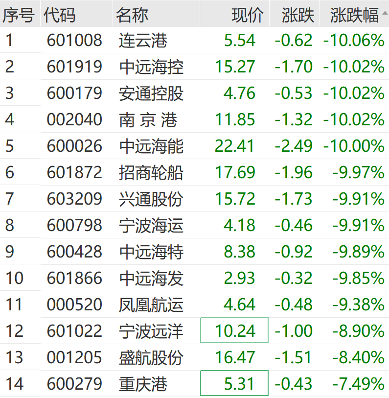 3月4日,交通运输板块盘初走低,连云港、中远海控、安通控股、招商轮船等近十股纷纷跌停。