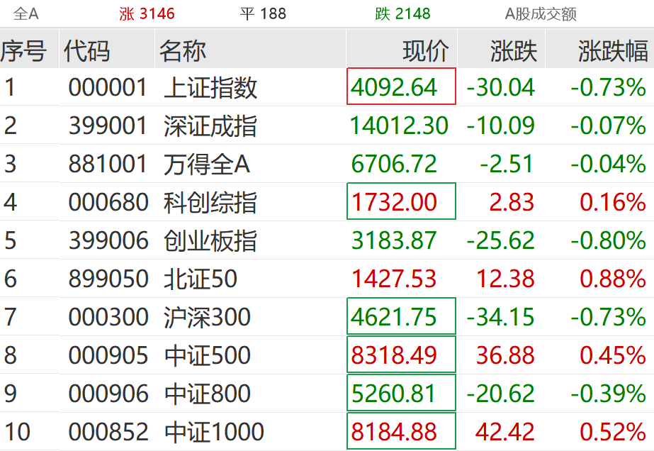 上午市场震荡回暖,截至发稿,上证指数跌约0.7%,科创综指、北证50指数等拉升翻红。