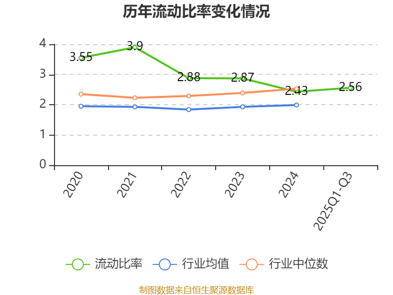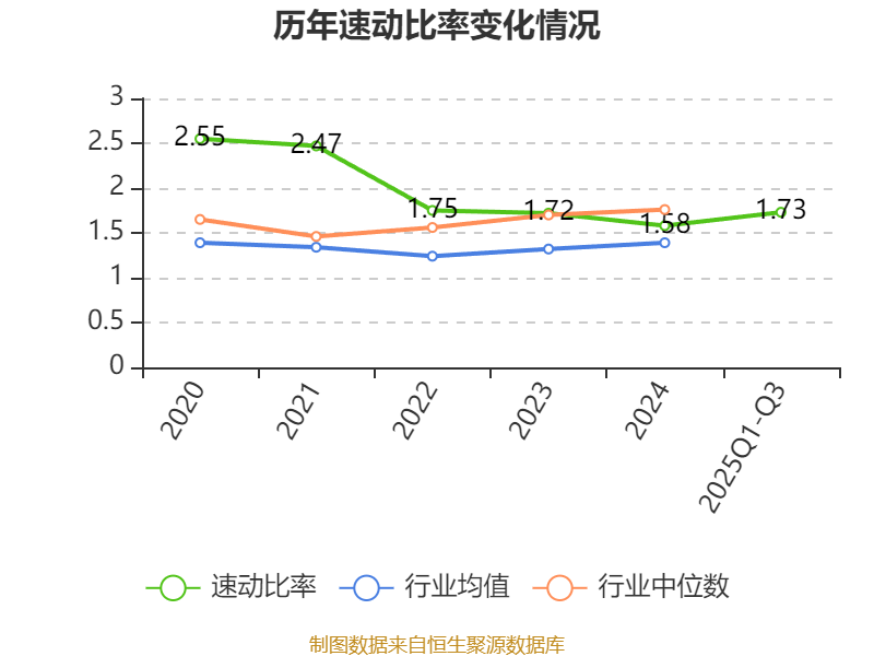 2025年前三季度,公司流动比率为2.56,速动比率为1.73。