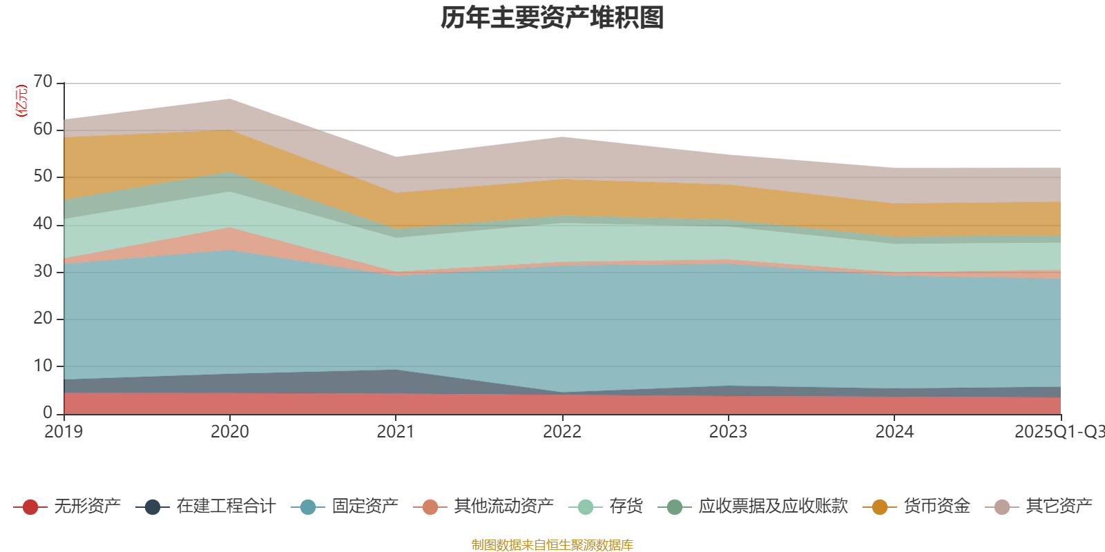资产重大变化方面,截至2025年三季度末,公司其他流动资产较上年末增加153.73%,占公司总资产比重上升2.14个百分点;固定资产较上年末减少4.11%,占公司总资产比重下降1.91个百分点;在建工程合计较上年末增加29.38%,占公司总资产比重上升0.98个百分点;交易性金融资产合计较上年末减少25%,占公司总资产比重下降0.58个百分点。