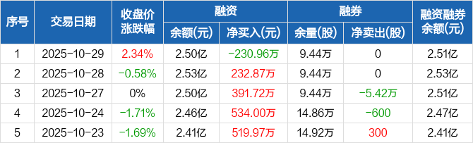 尔康制药:融资净偿还230.96万元,融资余额2.5亿元(10-29)