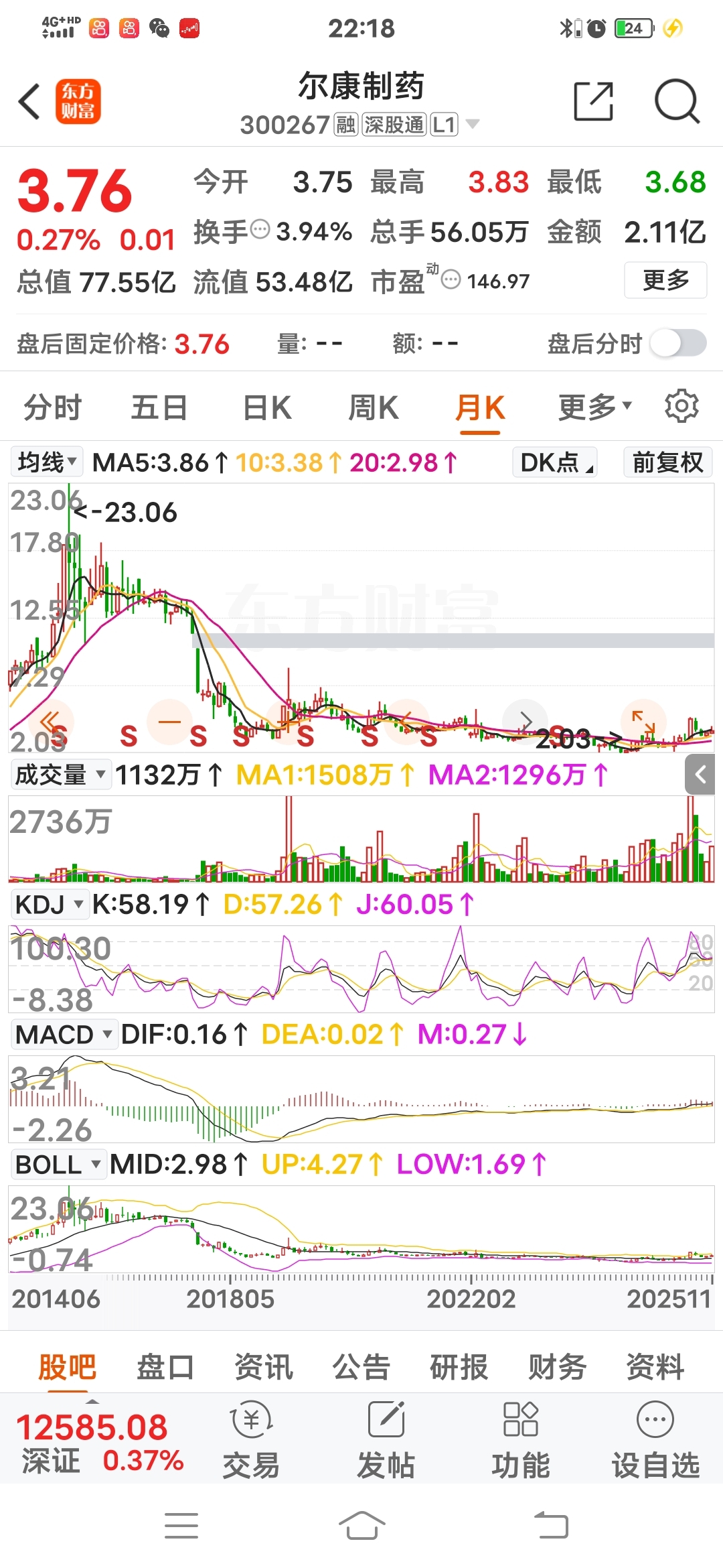 尔康制药月线底部,题材丰富,立足长线无忧,安心睡觉耐心等待!景先生在尔康的耐心还有16个月!