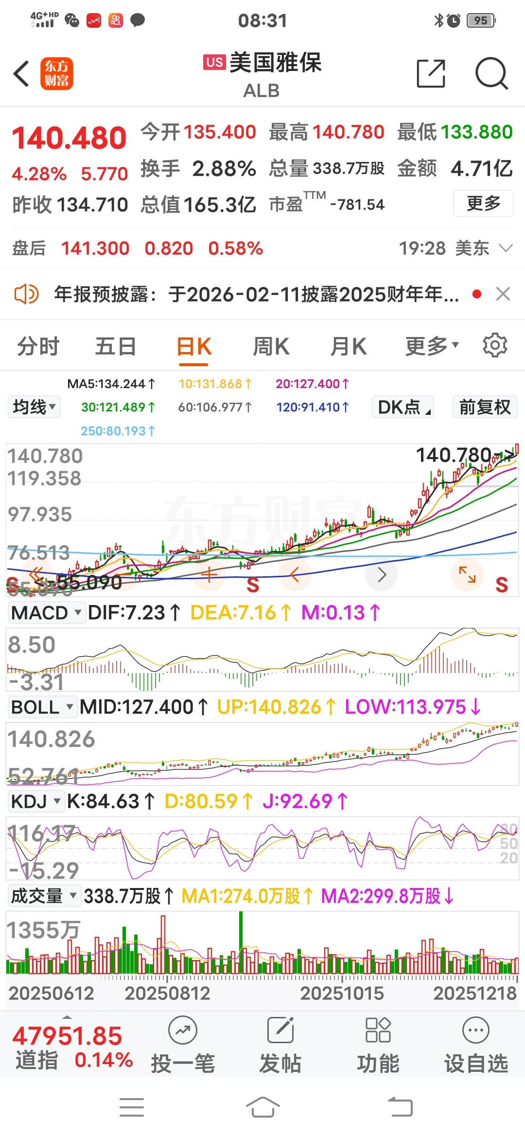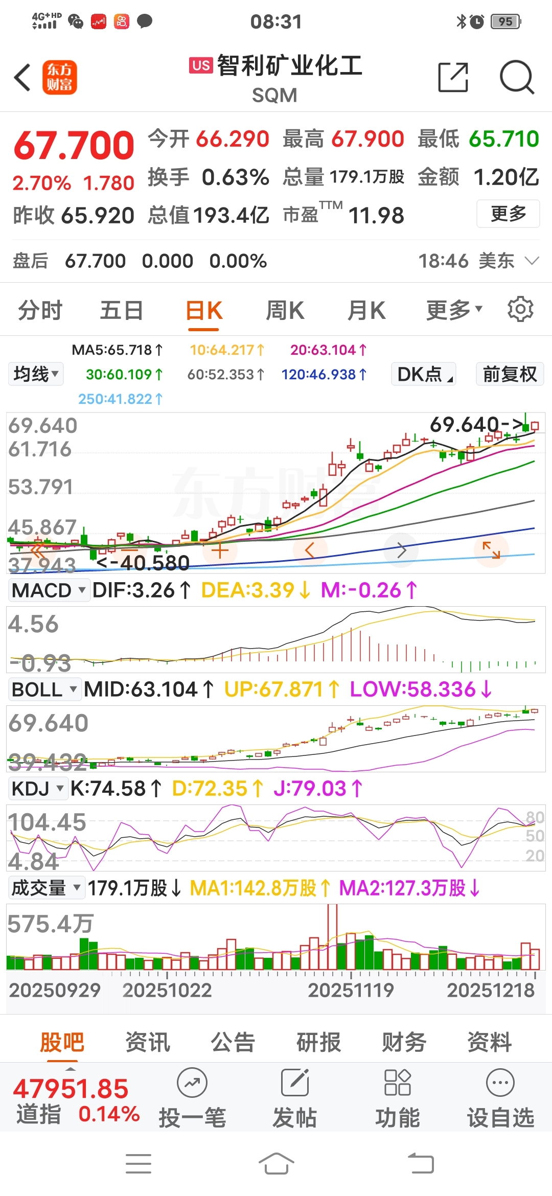全球锂业先行指标美国雅保和智利矿业化工继续稳步攀升,整个锂业板块值得期待,月线底部布局锂矿碳酸锂产业链的尔康制药一定会重新估值,转型估值牛可遇不可求!立足长线耐心等待,一份耐心一份收获!