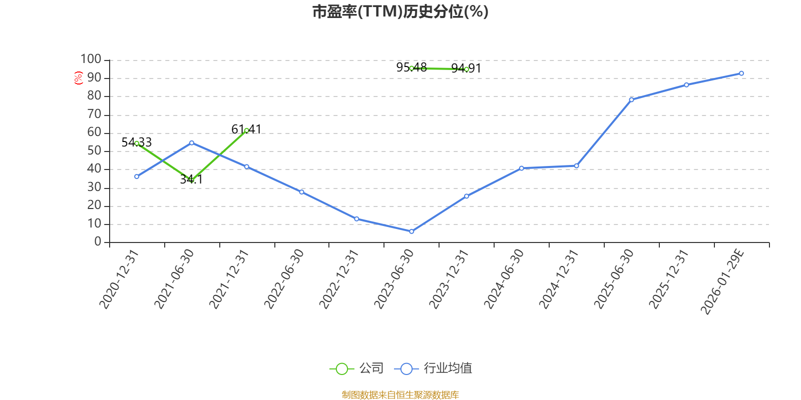 以本次披露业绩预告均值计算,公司近年市盈率(TTM)图如下所示: