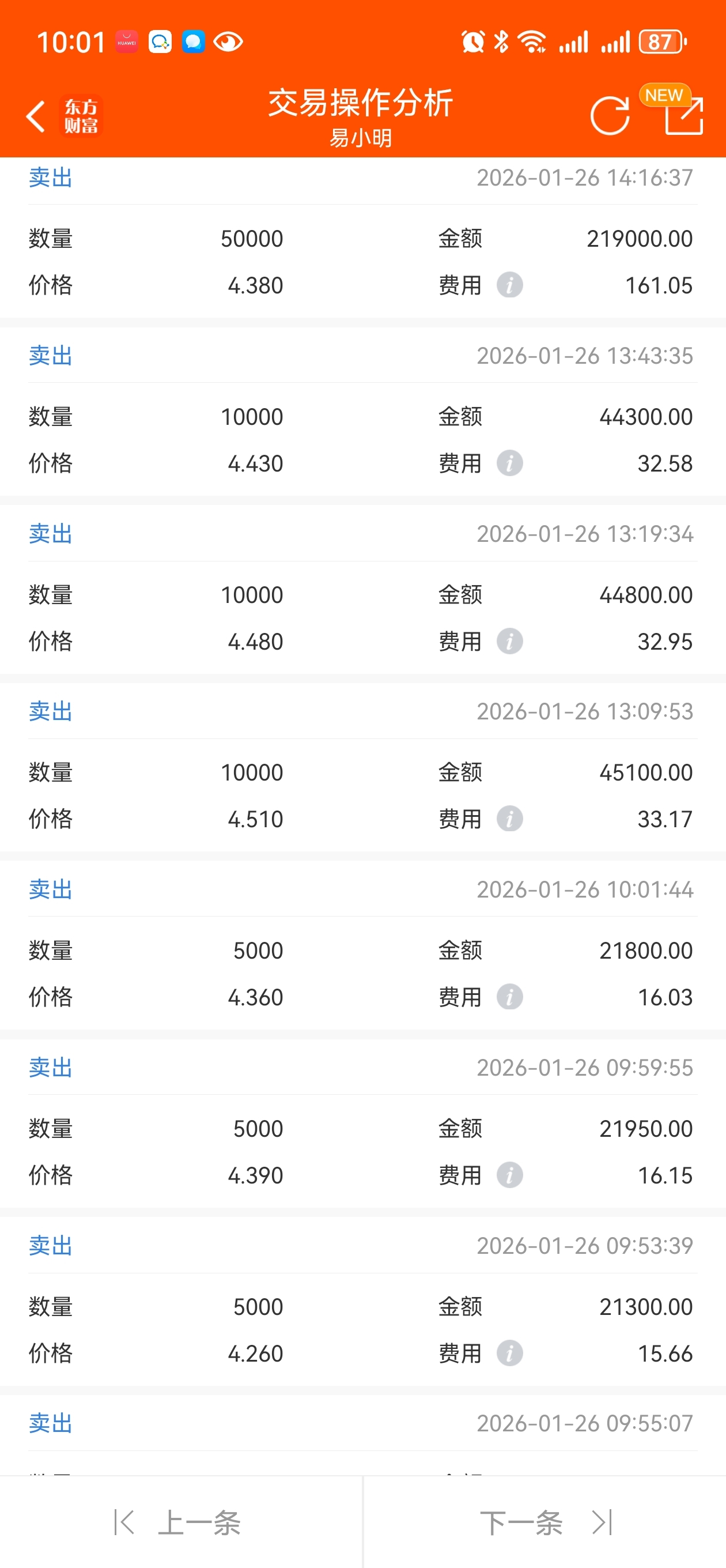 4.51....4.43.....4.30.......4.29....4.20己清仓,换了华谊兄弟2万股吃面今天跌了十七个点。