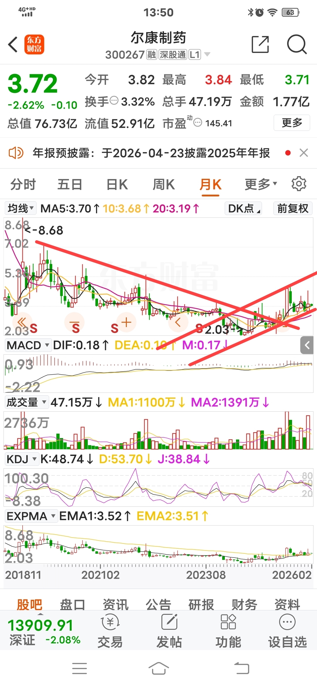 尔康制药下跌趋势早已结束,上升通道已经形成,转型锂业必然会重新估值,立足长线耐心等待必有厚报!