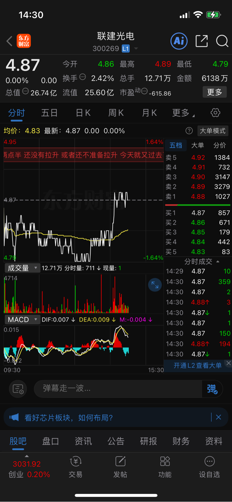 $联建光电(SZ300269)$ 两点半还不准备拉升,又过一天了,浪费这长时间的调整机会哦