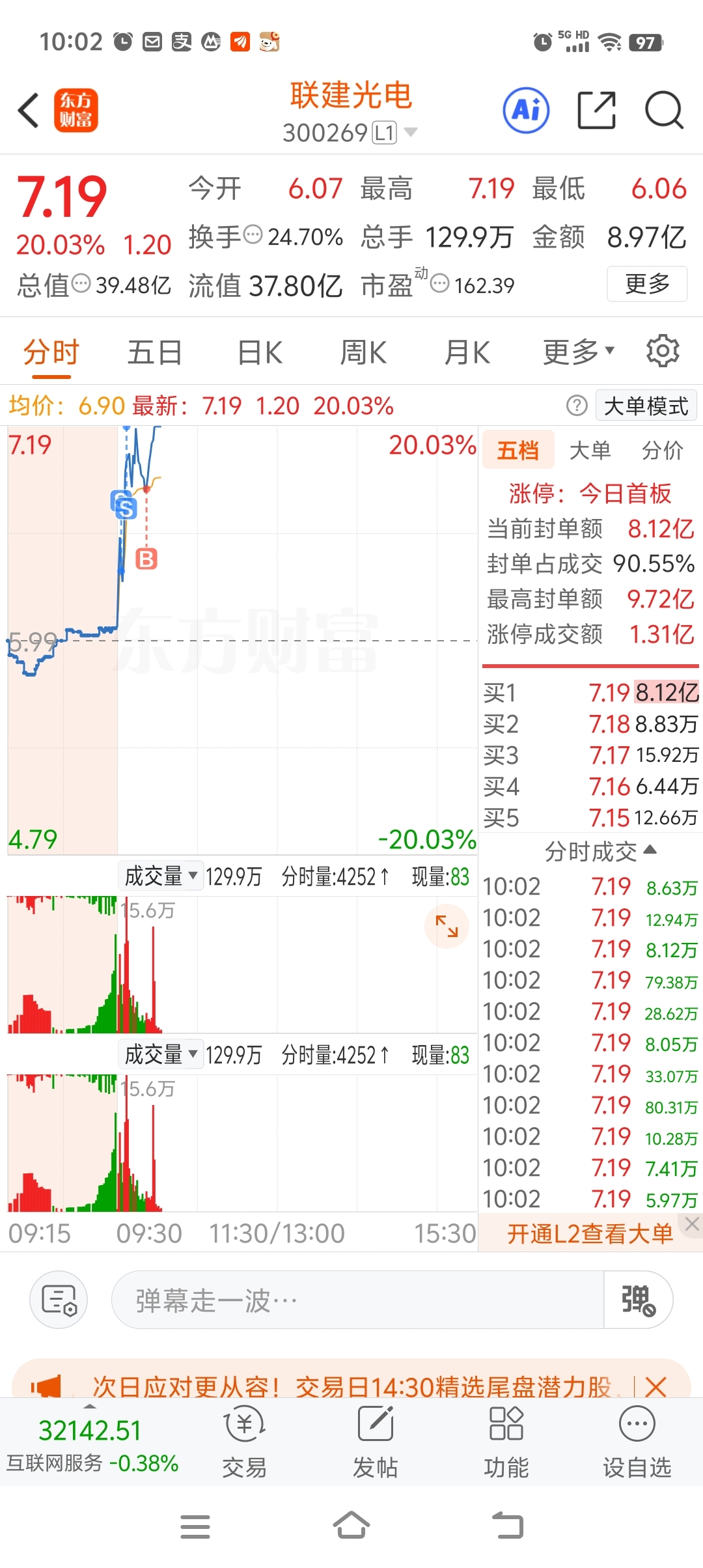 $联建光电(SZ300269)$ 第一笔卖飞了八毛多