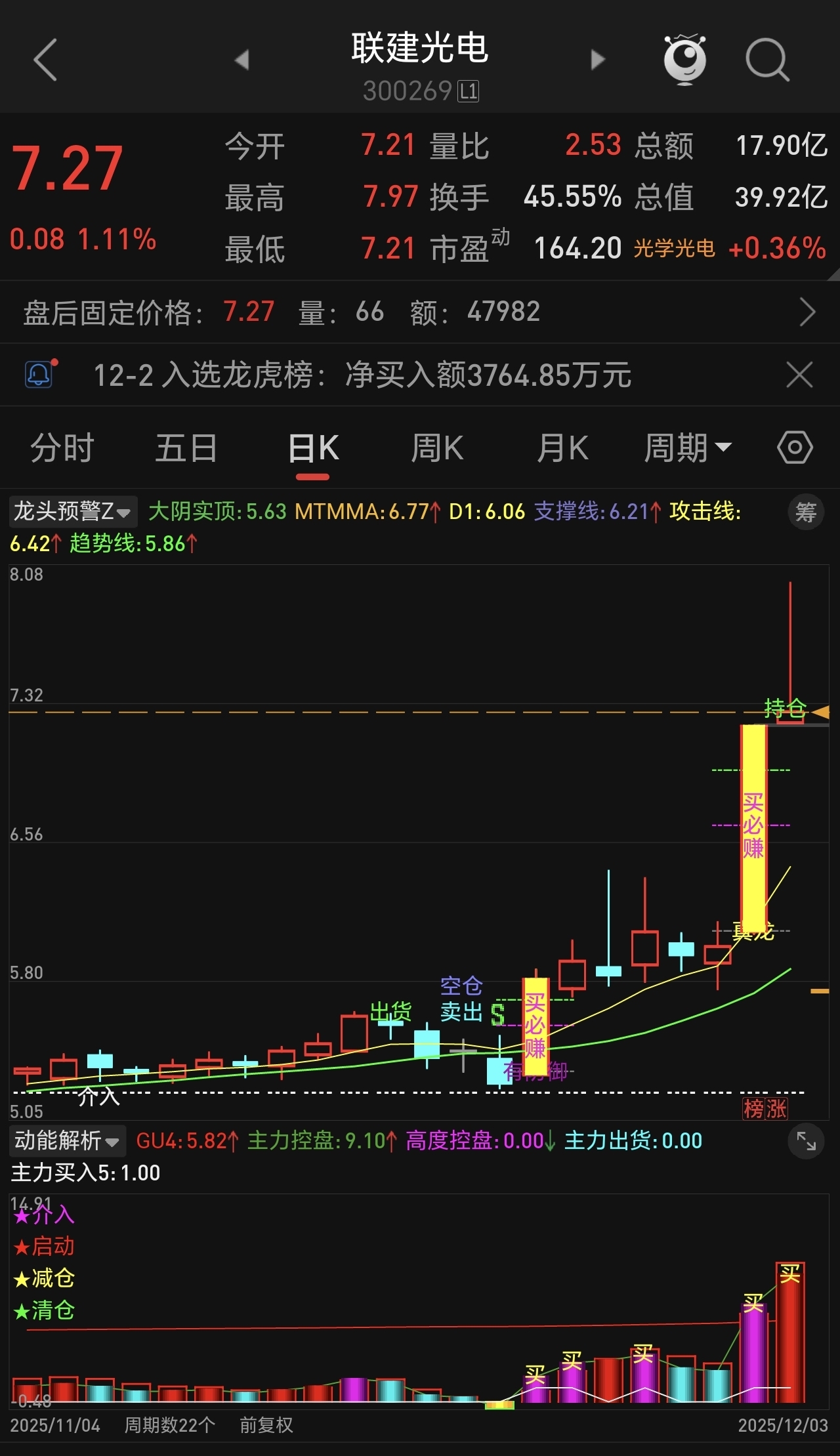 $联建光电(SZ300269)$ 明天±3%都是买点