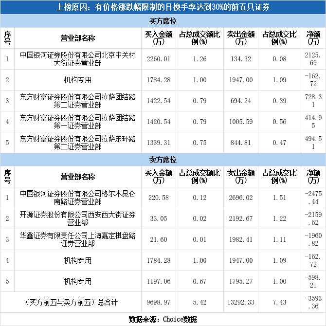 龙虎榜数据显示,今日共3个机构席位出现在龙虎榜单上,分别位列买二、卖四、卖五,合计净卖出760.93万元,占龙虎榜净卖额的21.18%。除此之外还有南网数字、同庆楼、平潭发展等30只个股榜单上出现了机构的身影,其中10家呈现机构净买入,获净买入最多的是四方达,净买额为5607.28万元;20家呈现机构净卖出,其中遭净卖出最高的为南网数字,净卖额为1.88亿元。