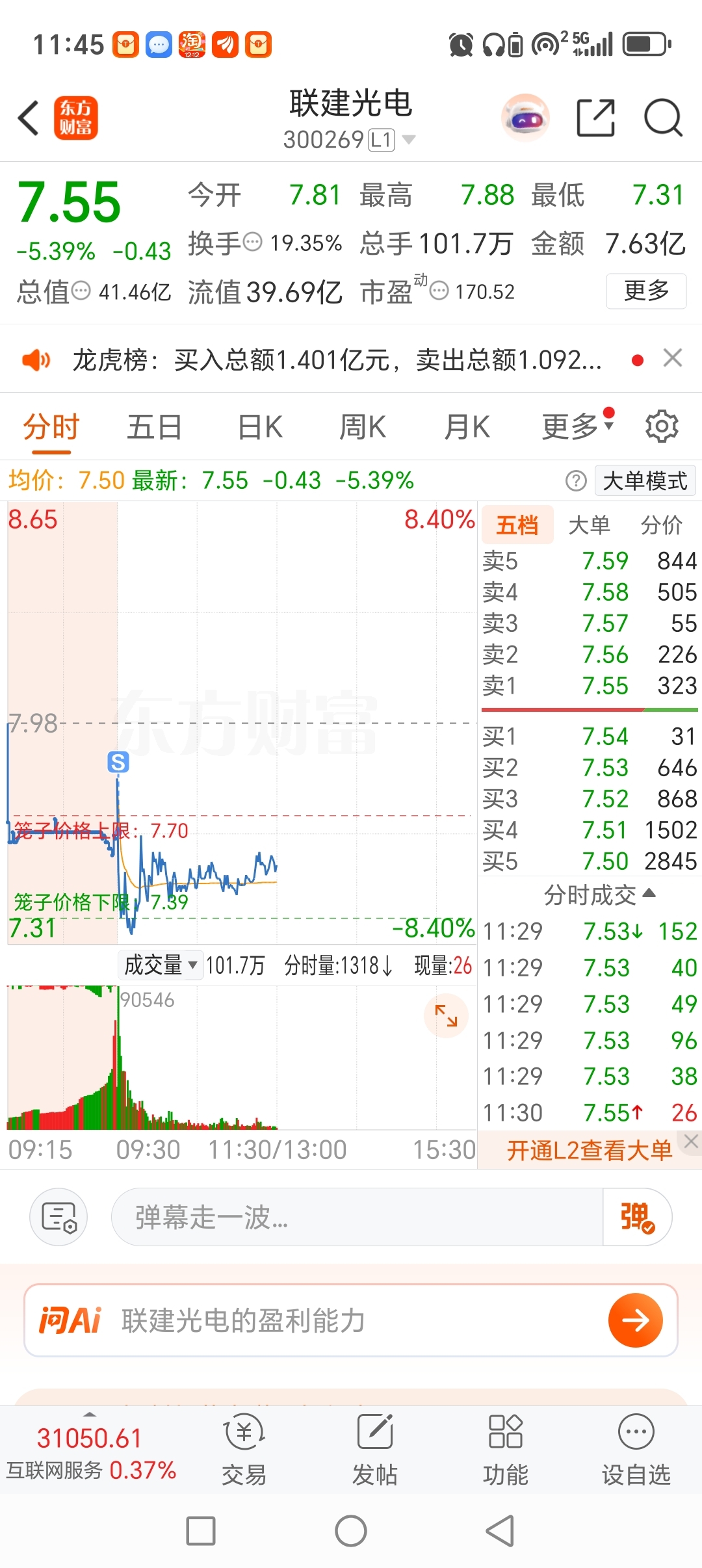 $联建光电(SZ300269)$ 亏2个点昨天非要把今天的预期拉完球