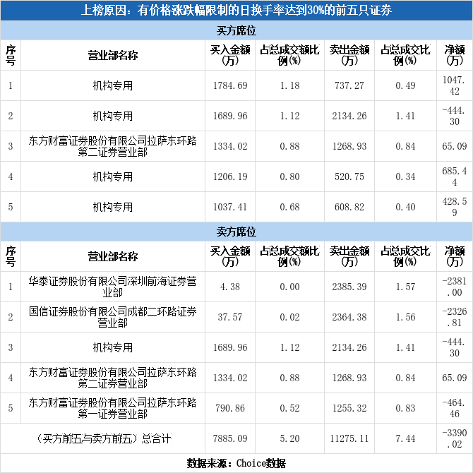 龙虎榜数据显示,今日共5个机构席位出现在龙虎榜单上,分别位列买一、买二、买四、买五、卖三,合计净买入1717.16万元,占该股今日总成交额的1.13%。除此之外还有广东宏大、红相股份、雪人集团等42只个股榜单上出现了机构的身影,其中25家呈现机构净买入,获净买入最多的是红相股份,净买额为1.96亿元;17家呈现机构净卖出,其中遭净卖出最高的为广东宏大,净卖额为2.01亿元。