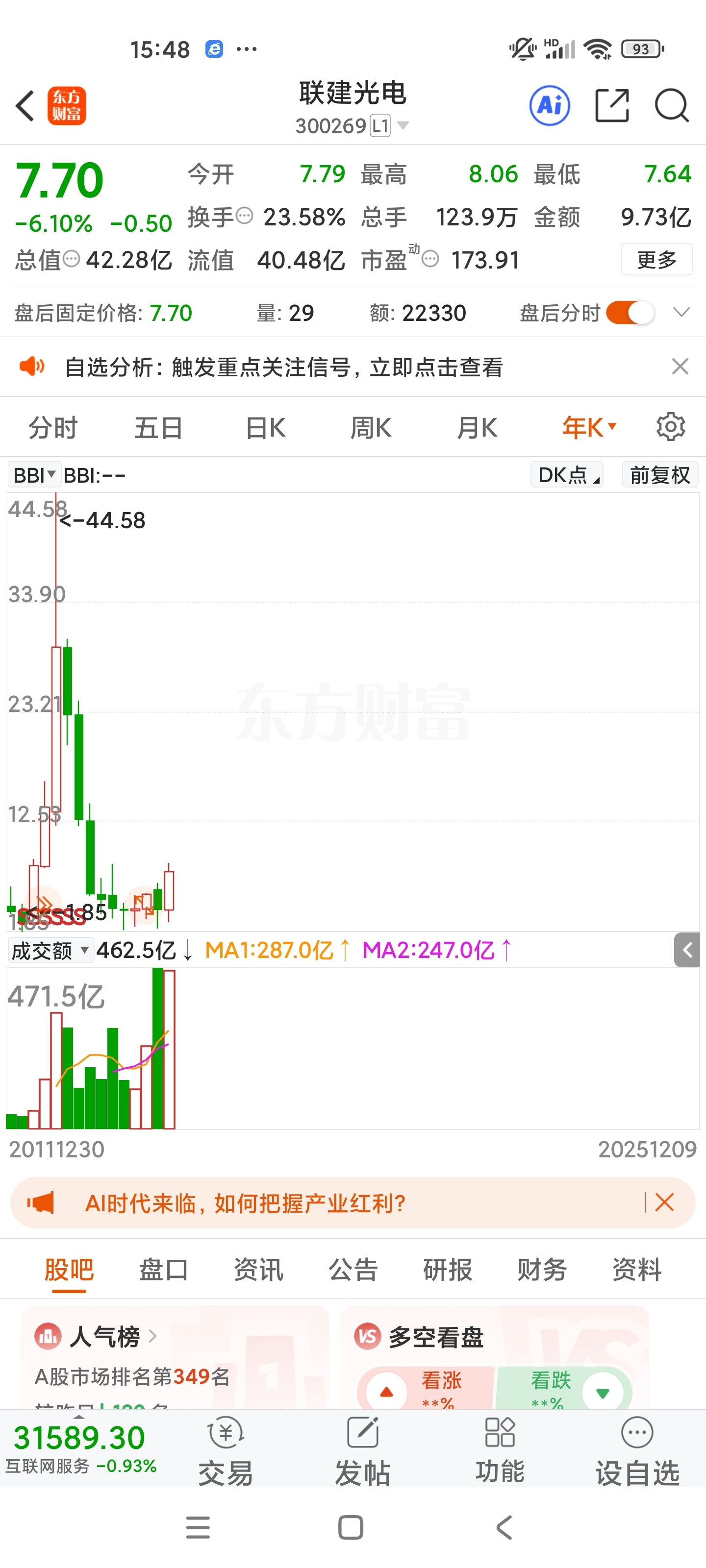 $联建光电(SZ300269)$ 从山顶跌到山谷