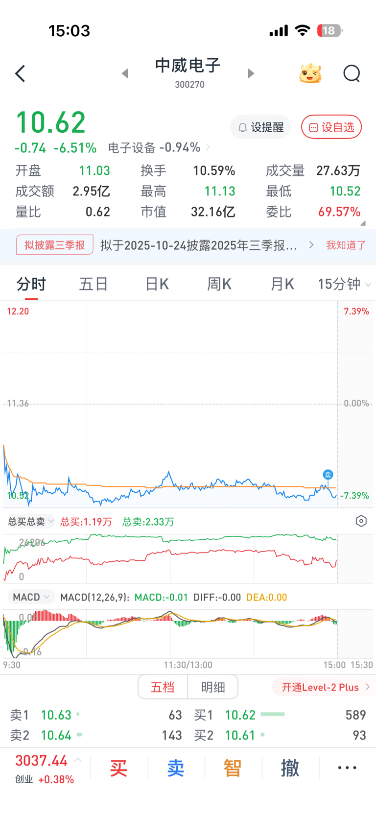 $中威电子(SZ300270)$ 拜拜了您。明天继续下跌,下周一再来看你