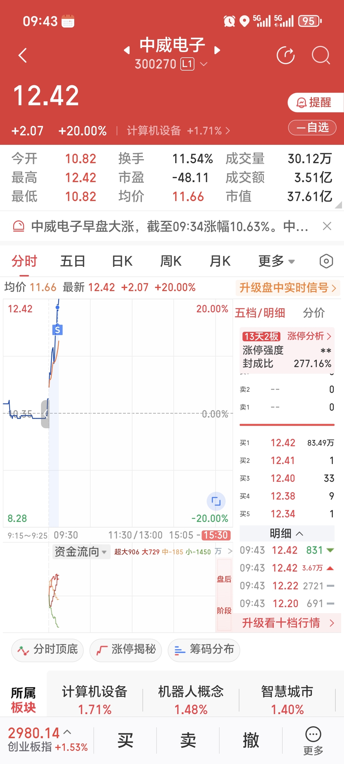 $中威电子(SZ300270)$ 卖早了感觉明天还是十几厘米