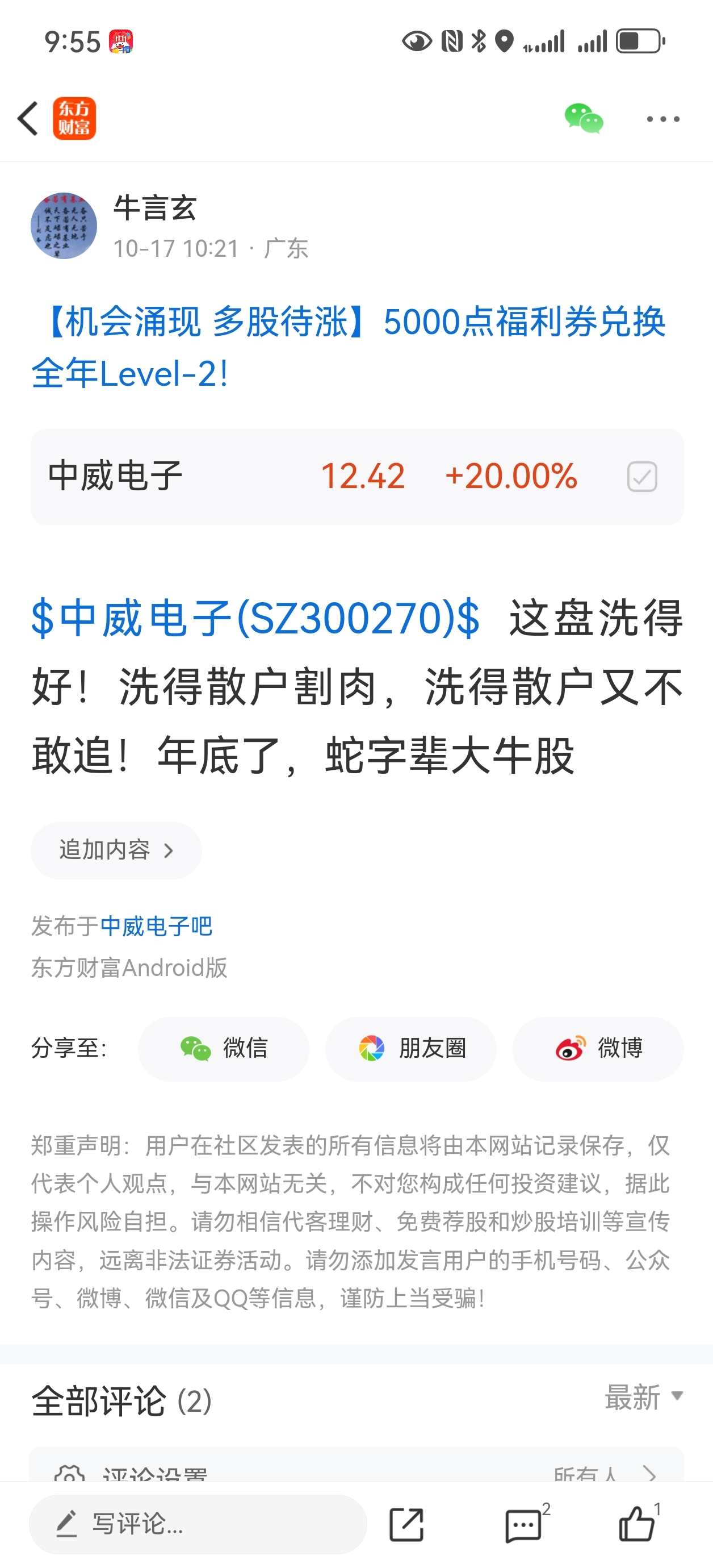 温馨提示: 1.根据《证券法》规定,禁止编造、传播虚假信息或者误导性信息,扰乱证券市场;2.用户在本社区发表的所有资料、言论等仅代表个人观点,与本网站立场无关,不对您构成任何投资建议。用户应基于自己的独立判断,自行决定证券投资并承担相应风险。《东方财富社区管理规定》