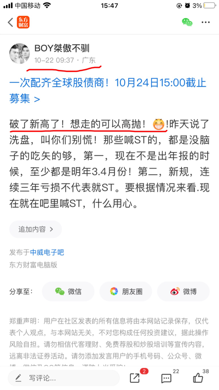 温馨提示: 1.根据《证券法》规定,禁止编造、传播虚假信息或者误导性信息,扰乱证券市场;2.用户在本社区发表的所有资料、言论等仅代表个人观点,与本网站立场无关,不对您构成任何投资建议。用户应基于自己的独立判断,自行决定证券投资并承担相应风险。《东方财富社区管理规定》