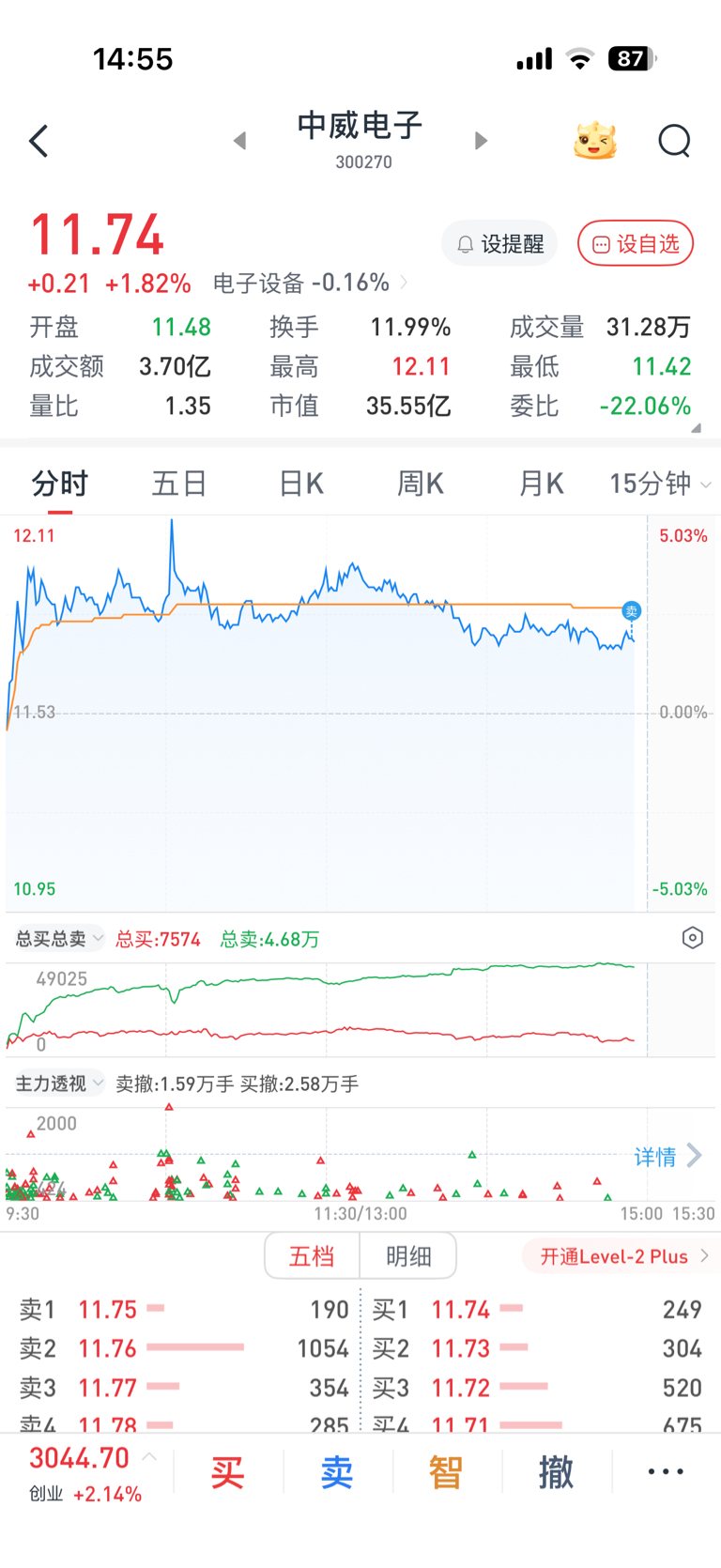 $中威电子(SZ300270)$ 11.75先走喽~明后两天大概率要把这三天涨的,跌回去。