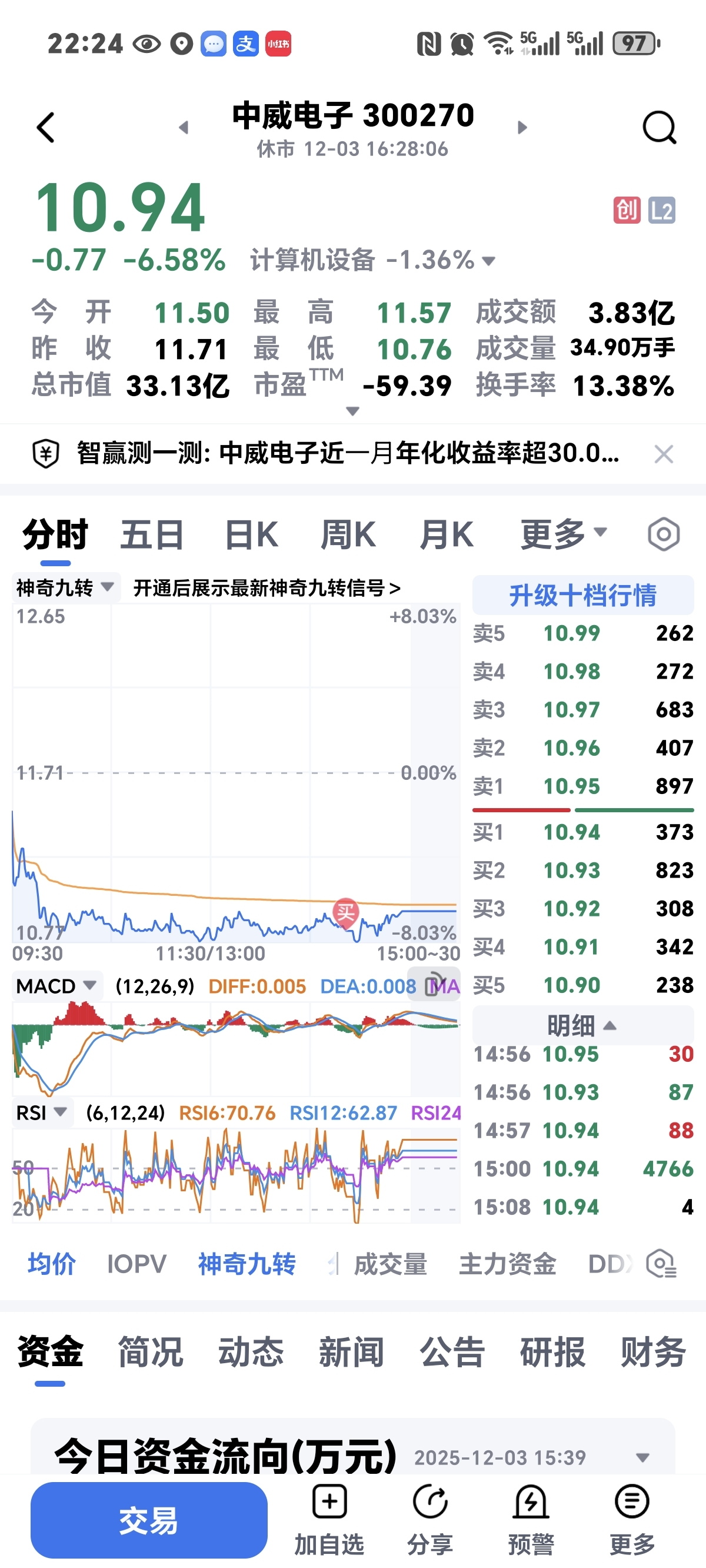 $中威电子(SZ300270)$ 今天抄底明天能不能喝到汤