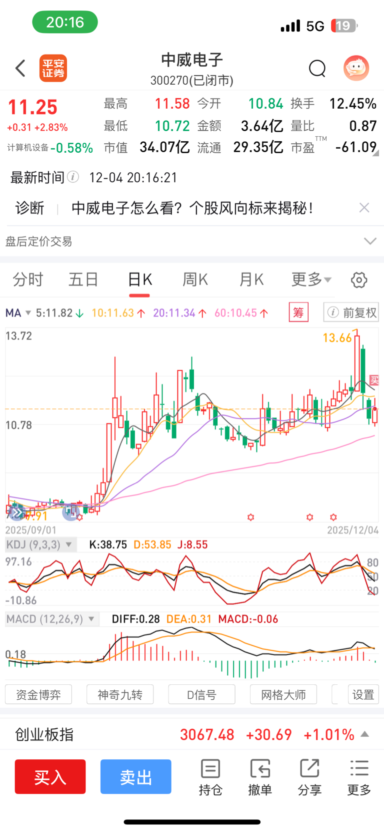 $中威电子(SZ300270)$ 第一次买这股,被我赶上了,操,满仓。风险还是有的,早知道半仓了。