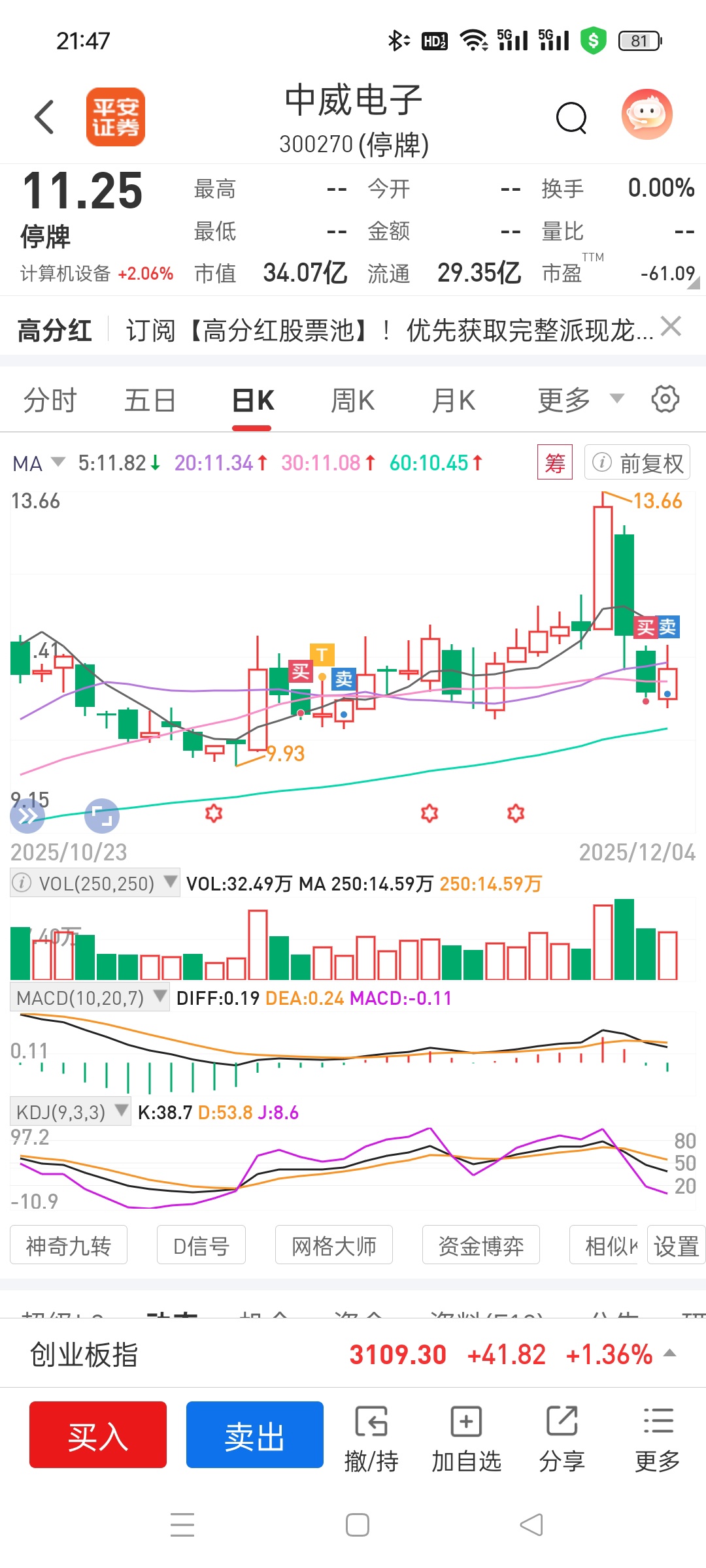 $中威电子(SZ300270)$ 真是狂晕,昨天一卖出今天就停牌了,真的错过几个亿了