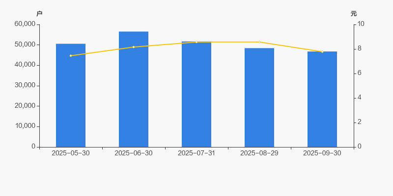 截至2025年9月30日,公司最新总股本为8.12亿股,其中流通股本为7.97亿股。户均持有流通股数量由上期的1.65万股上升至1.7万股,户均流通市值13.26万元。