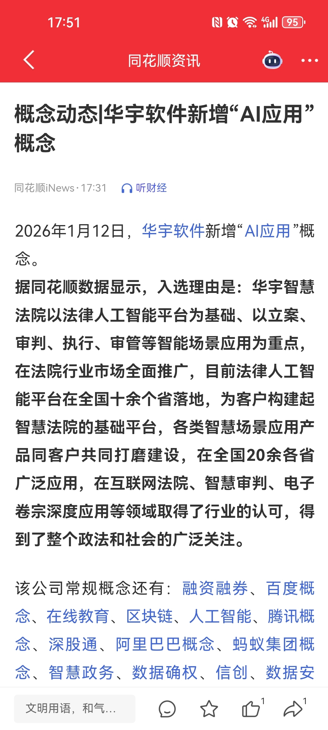 $华宇软件(SZ300271)$ 同花顺加了