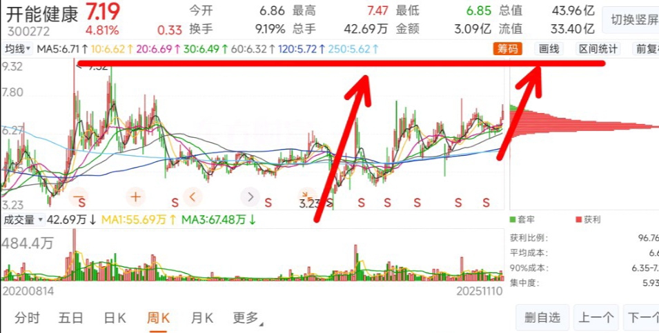 $开能健康(SZ300272)$ 上面目标位9.32,刚试盘突破过左峰,回调到位就低吸,不到目标位不出