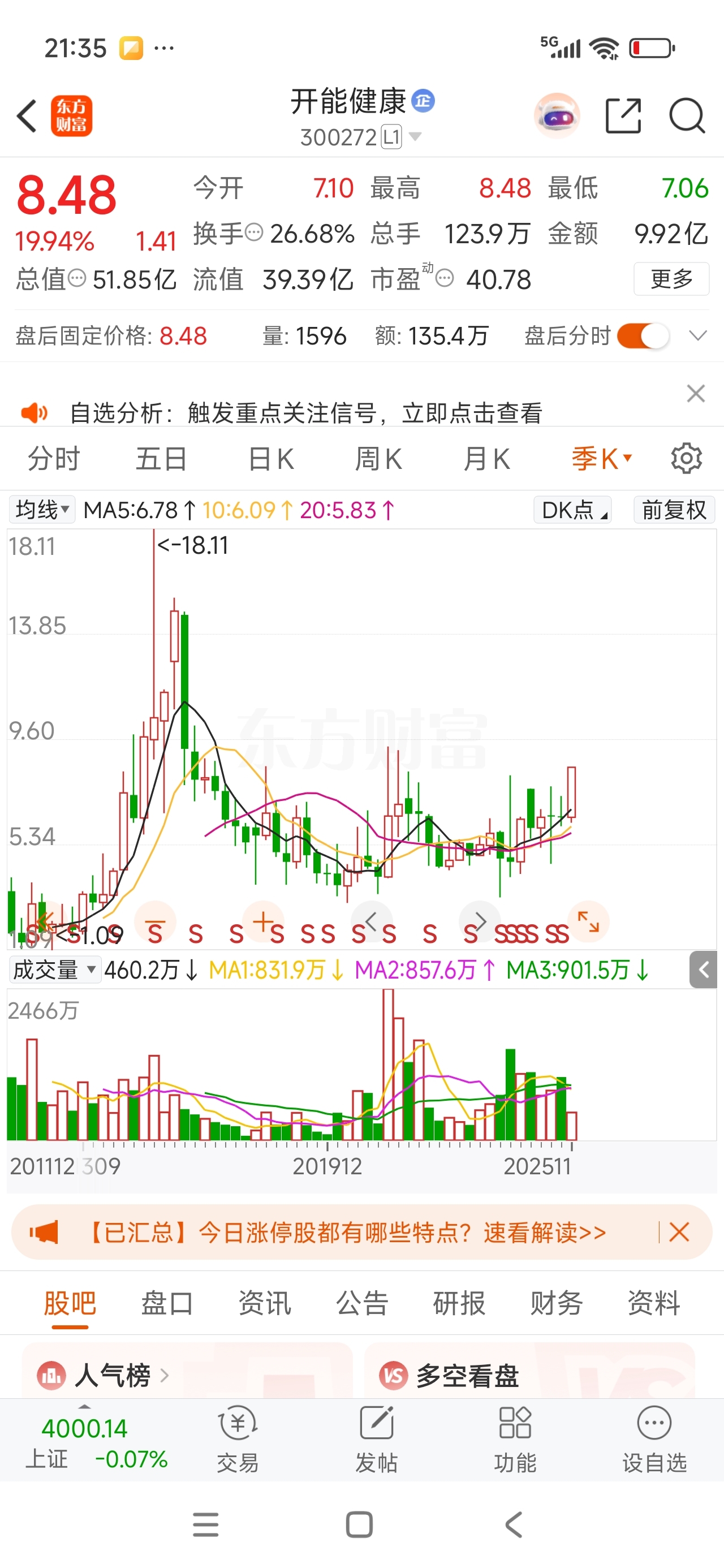 $开能健康(SZ300272)$ 季线W底已形成,目标18元