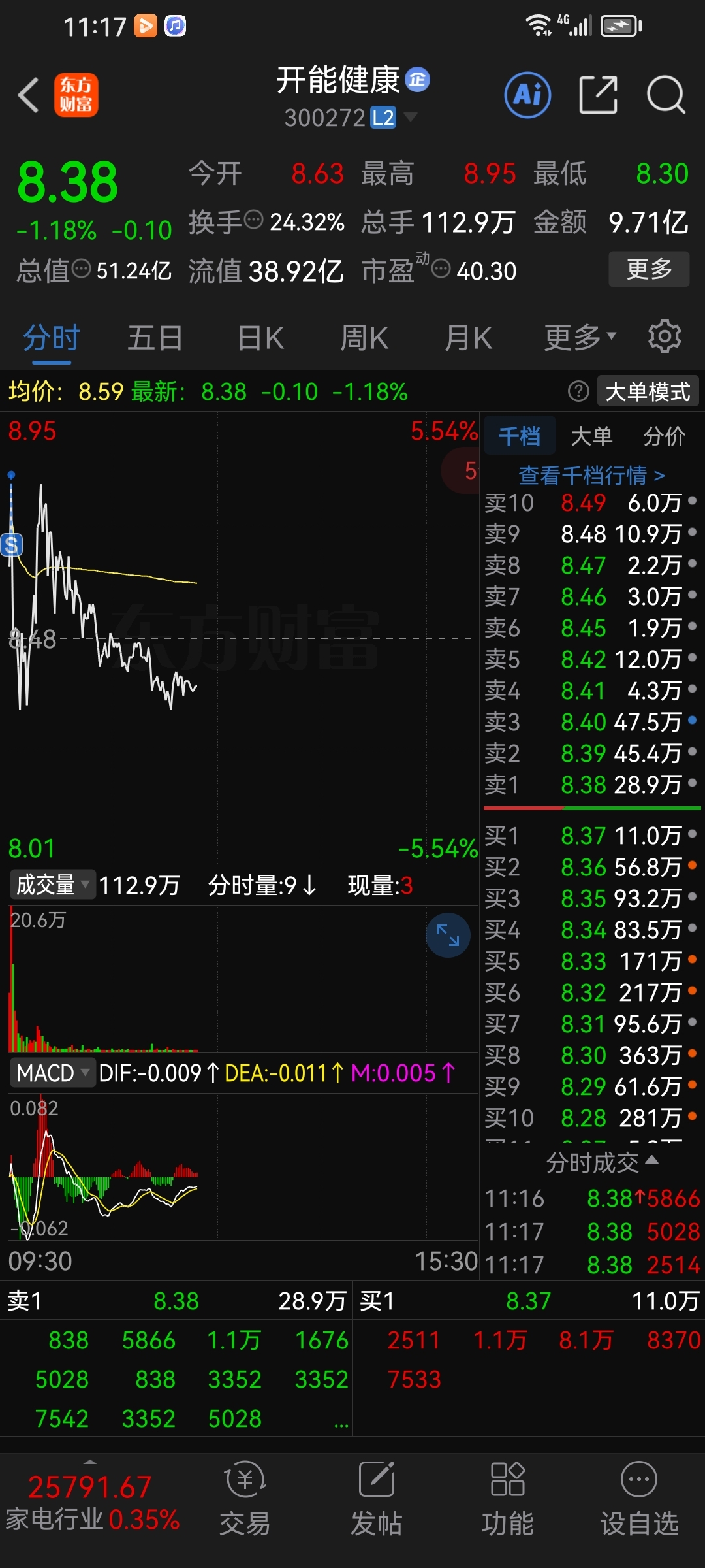 $开能健康(SZ300272)$ 感谢主力不杀之恩,清仓逃命了。留下来的发财。
