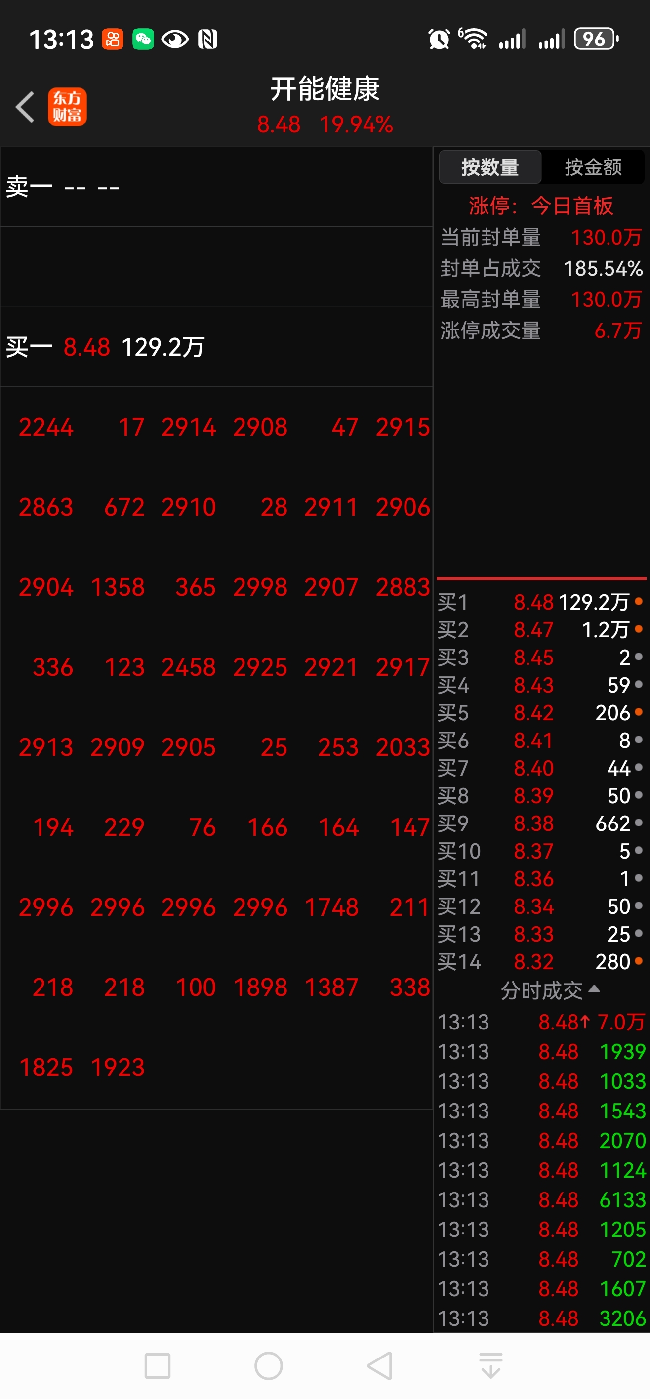 有图有真相!坚定锁仓,昨天13:13最高封单130万手11个亿的资金,以8.48