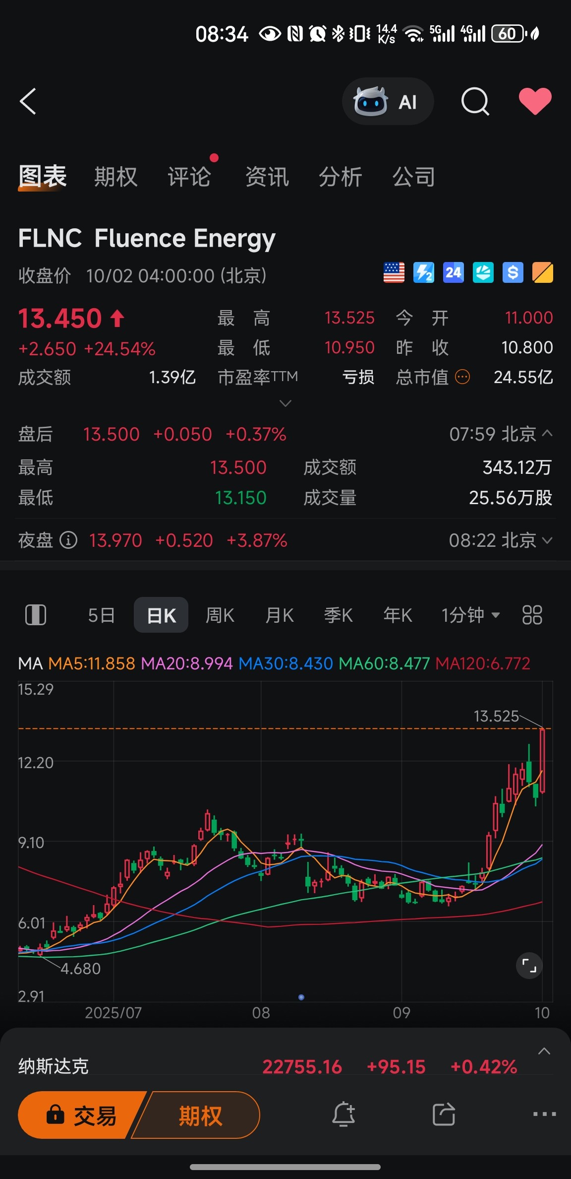 Fluence Energy直接干到24.54%高点收盘,绝!