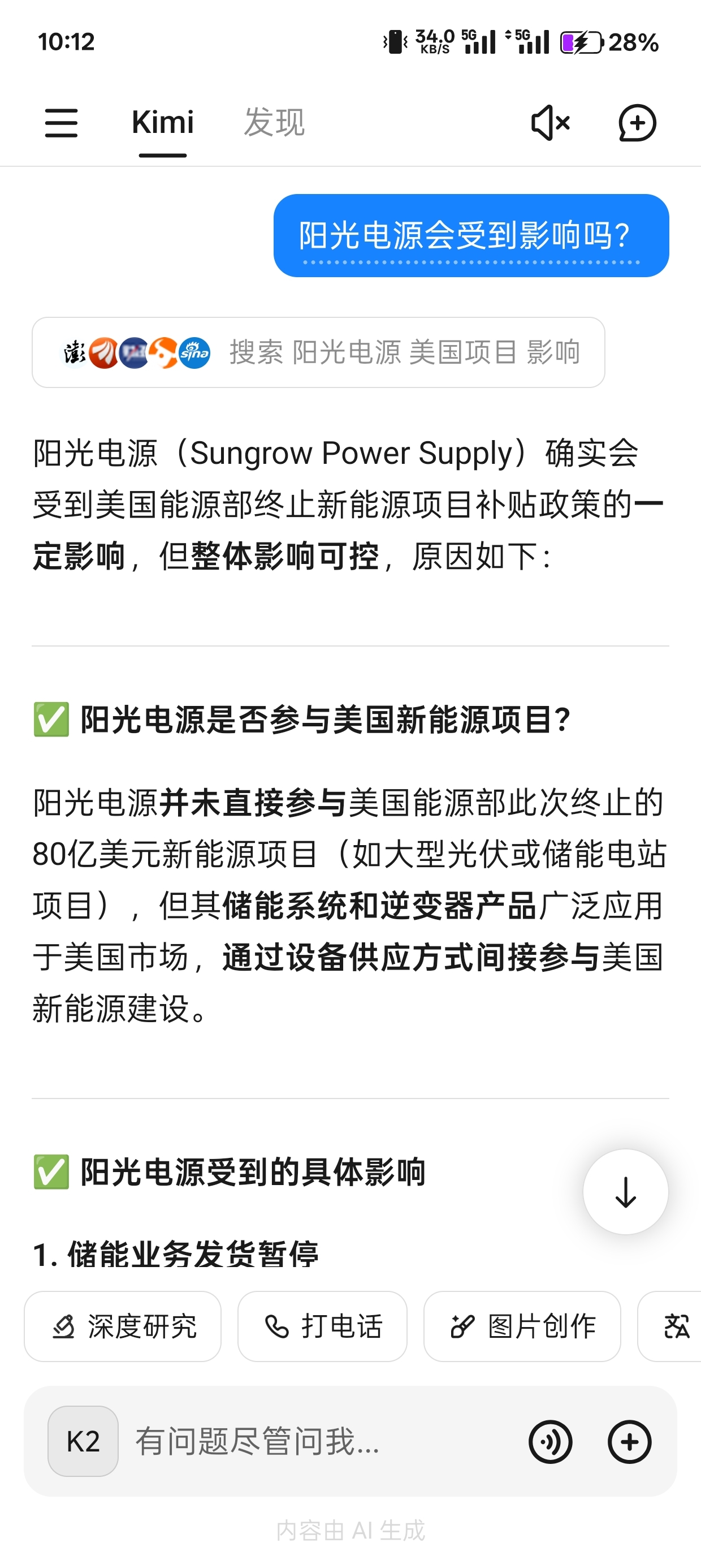 $阳光电源(SZ300274)$ 大家有没有看到消息,2号美国要终止80亿美元的新能源项目,还好阳光电源不会受到直接影响,但是间接影响不知道有多大,大家可以在评论区讨论一下