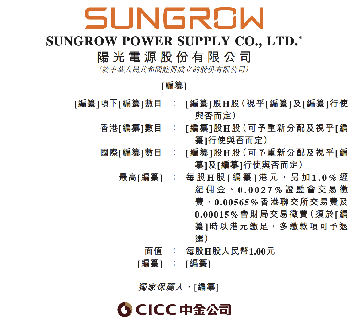 据港交所文件,10月5日,阳光电源股份有限公司向港交所提交上市申请书,独家保荐人为中金公司。