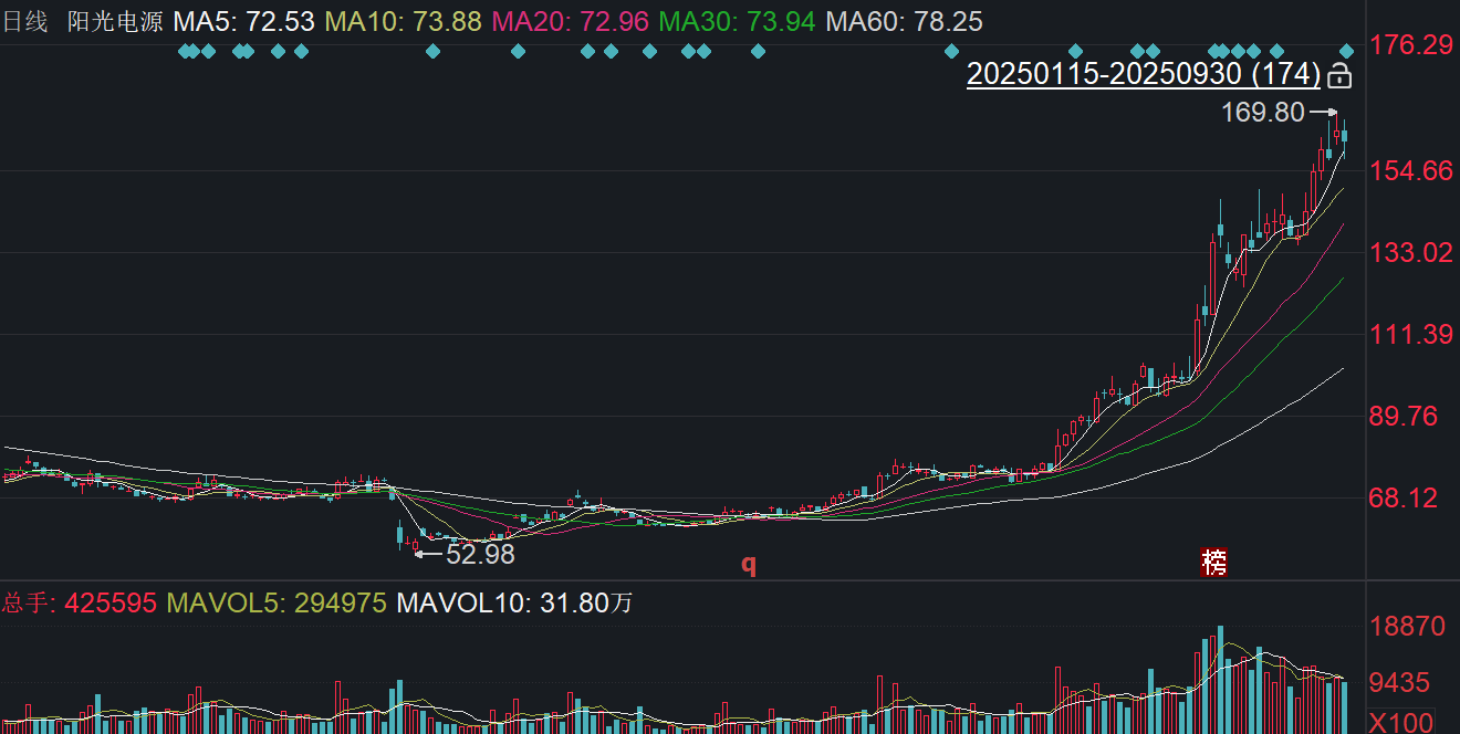 截至9月30日收盘,阳光电源下跌1.83%报161.98元/股,与8月1日72元的价格相比,累计涨近125%。同时,阳光电源的市值从8月初的约1500亿元,骤然攀升至近期的3358亿元。